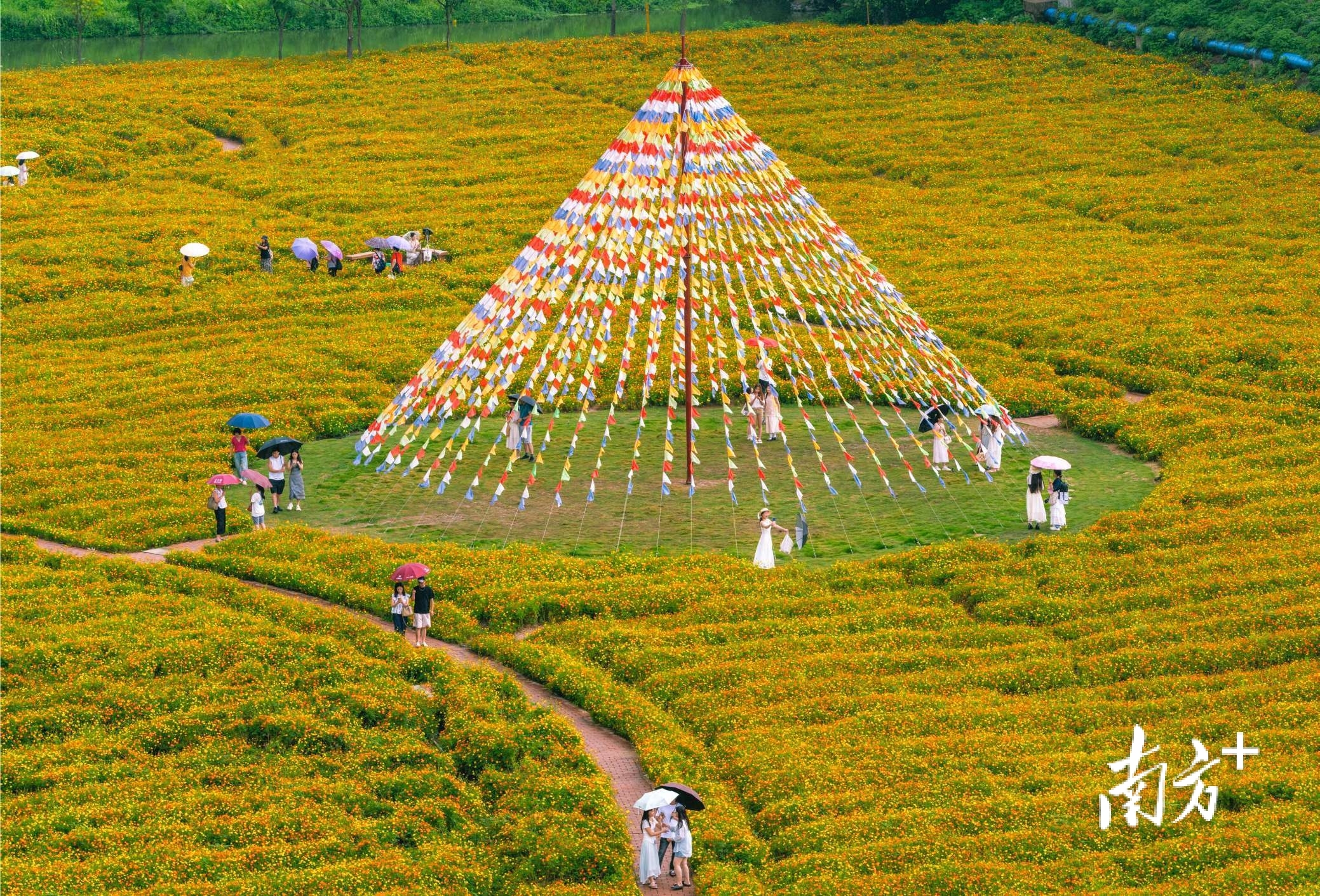 6月28日,佛山市南海区西樵山西门八十亩波斯菊盛开,放眼望去宛如一片童话世界。南方+拍客 麦志豪 摄