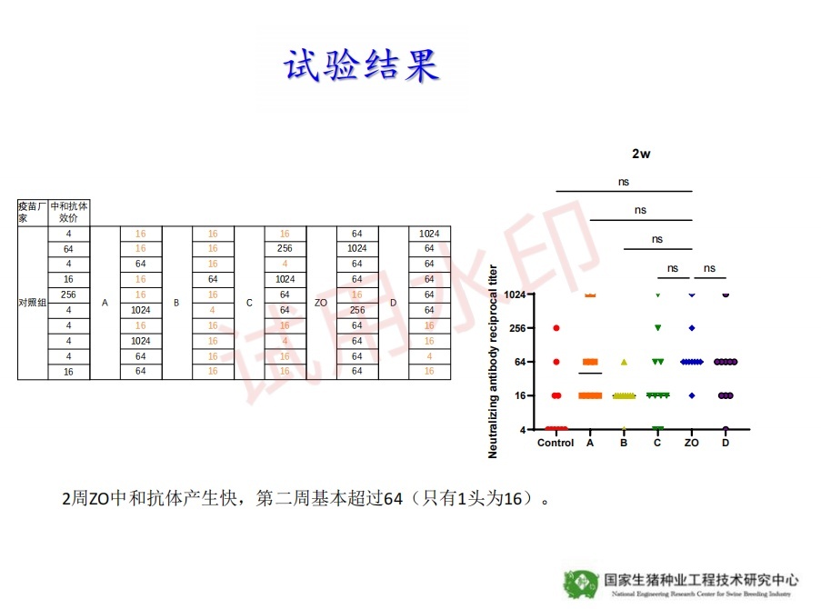 宋长绪团队实验发现,硕腾瑞圆舒组(ZO)的PCV2中和抗体产生快,第二周基本超过64。